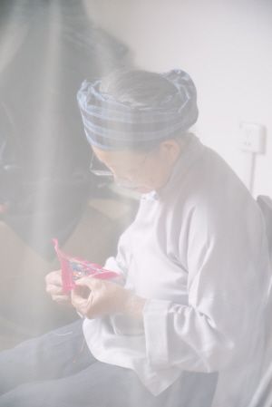 對制衣人來說,她們如舉行儀式般專注著染布、成衣,或許也在這個過程中積攢起許多專注和深情。一位有十幾年經(jīng)驗的阿姐曾告訴我:“做這衣服要有一顆溫柔的心?!甭爼r深深一顫,而用黃奶奶樸素的話,則是“染布高興”。
