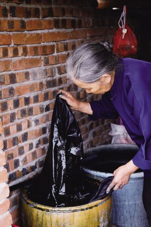黃奶奶在染布。