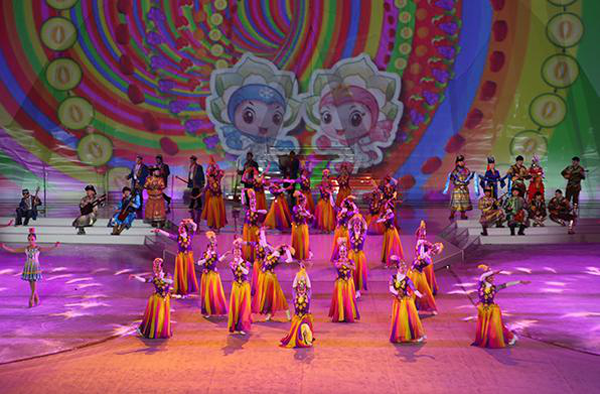2016年1月20日,為期11天的第十三屆全國(guó)冬季運(yùn)動(dòng)會(huì)在烏魯木齊冰上運(yùn)動(dòng)中心速滑館拉開(kāi)大幕。開(kāi)幕式由體育儀式、文體表演和點(diǎn)燃主火炬塔三個(gè)部分組成。在文體表演章節(jié),承擔(dān)本次開(kāi)幕式文體表演與伴舞任務(wù)的新疆藝術(shù)學(xué)院200名學(xué)生與來(lái)自新疆各民族的文藝工作者一起,為觀眾獻(xiàn)上了一臺(tái)精心策劃和編排、以“冰雪天山陽(yáng)光絲路”為主題的精彩表演。參加開(kāi)幕式文體表演的舞蹈系2014級(jí)、2015級(jí)學(xué)生,大部分是第一次參加國(guó)家級(jí)的大型活動(dòng),他們克服嚴(yán)寒,用自己的實(shí)際行動(dòng)為精彩冬運(yùn)會(huì)助力添彩