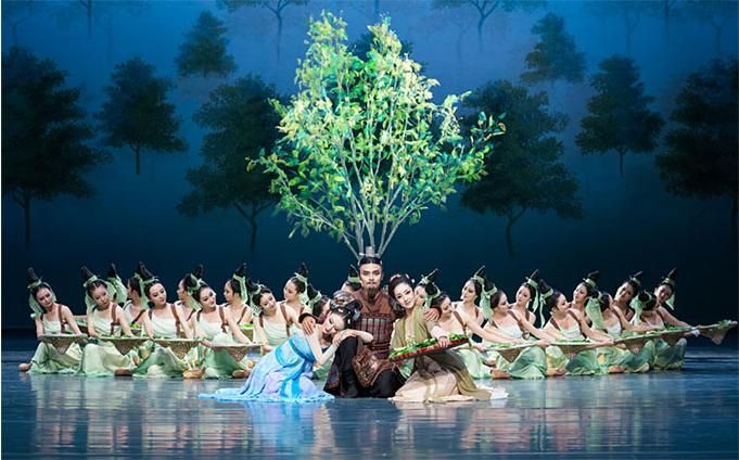 舞劇《傳絲公主》以蠶絲為戲劇元素,以蠶桑女寧兒與于闐王子尉遲的愛(ài)情為外在線索,以盛唐時(shí)中原與西域的交流往來(lái)為隱伏線索,將凄美的愛(ài)情故事與壯闊的家國(guó)情懷交織在一起,引領(lǐng)觀眾穿越到大唐盛世,感受繁興的絲路文化和豐富多彩的民族風(fēng)情。