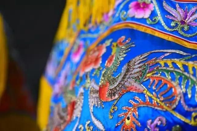龍鳳褂裙,為女子出嫁與善終之時(shí)所穿之物。本作品采用精細(xì)金銀線配以潮繡墊高技法,繡制龍鳳圖案多達(dá)70余只,成為褂裙等級中的最高規(guī)格“褂王”。