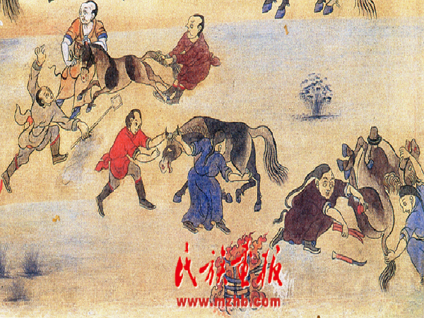 放牧遠(yuǎn)行,馬是重要的交通工具;嫁娶新人,要以駿馬為坐騎;宗教神話中,馬是神的代言者;草原盛會,賽馬是必不可少的內(nèi)容;在蒙古族民間傳說和歌謠中,對馬的贊頌更是比比皆是。馬是蒙古人日常生活最親密的伙伴,蒙古人有特別濃厚的戀馬情結(jié),這就是我們說的“馬文化”現(xiàn)象。蒙古族的馬文化是在長期生產(chǎn)生活中逐漸形成、演化、發(fā)展而來的。曾是軍事、交通運(yùn)輸、農(nóng)業(yè)生產(chǎn)等活動的主要動力。