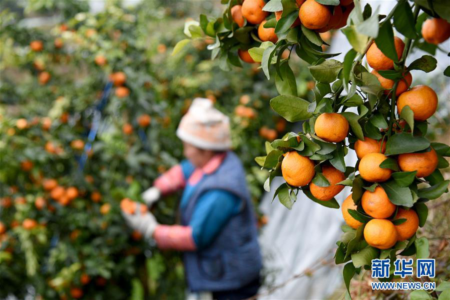 3月2日,在貴州榕江縣忠誠(chéng)鎮(zhèn)王嶺村砂糖橘種植基地,果農(nóng)在采摘砂糖橘。