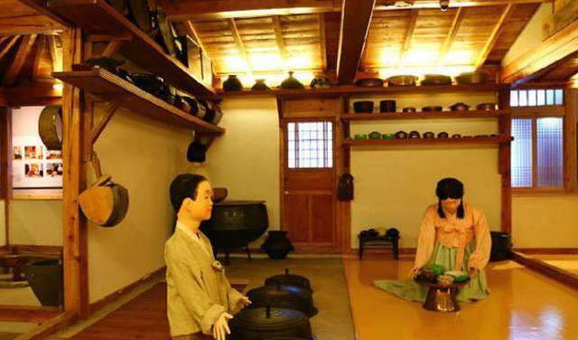 無(wú)論什么類(lèi)型的朝鮮族傳統(tǒng)民居,只要走進(jìn)房屋,第一個(gè)感覺(jué)就是有很大的一個(gè)炕??皇浅r族人在室內(nèi)的主要活動(dòng)空間,你看有的炕上親友們?cè)趪缹?duì)飲,有的炕上婦女們?cè)谧龌钣?jì),還有的炕上孩子們?cè)谕嫠!?淮?,散熱面積就大,屋里到了冬天就會(huì)顯得特別暖和。在延邊地區(qū)朝鮮族房屋內(nèi)的灶坑更是別具一格,它下陷在地下,底部低于地面,上部還有蓋板,而蓋板和鍋臺(tái)、炕面形成了一個(gè)平面。據(jù)說(shuō),這種灶坑是既好燒、又衛(wèi)生。