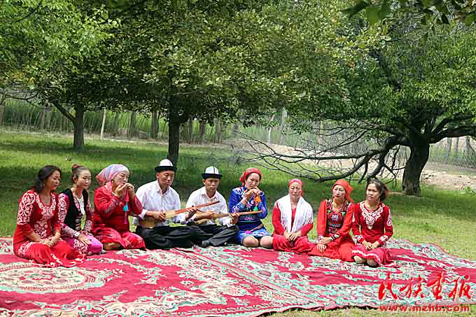 據(jù)色帕巴依鄉(xiāng)黨委委員阿依木古麗·艾山卡德介紹,該鄉(xiāng)在鄉(xiāng)中心小學專門開設(shè)課程教學生學彈庫姆孜琴,并積極舉辦“我為庫姆孜代言”活動,積極培養(yǎng)庫姆孜傳承人。此外,鄉(xiāng)里還專門組建有庫姆孜彈唱隊?!拔覀兝冒偃瘴幕瘡V場和日常的演出走村串巷,積極參加縣宣傳部開展的各項文體活動。今年2月開展的群眾大會,把庫姆孜音樂重新填詞,配合惠民政策宣傳,將傳播民族文化與群眾思想政治工作相結(jié)合。”同樣,在烏恰縣吾合沙魯鄉(xiāng)恰提村,當?shù)伛v村工作隊積極組織20名返鄉(xiāng)學生開辦“庫姆孜彈唱文藝培訓班”,廣泛調(diào)動返鄉(xiāng)大學生加入到文化傳承的行列中。