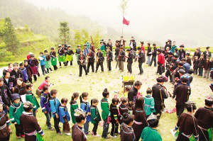 苗族在歷史上曾經(jīng)一次次崛起、一次次戰(zhàn)敗、一次次開(kāi)辟、一次次丟失。在長(zhǎng)期的遷徙中,他們不但丟失了土地,丟失了家園,還丟失了文字。似乎八寨苗這一支丟失得更多——他們連節(jié)日都丟失了。一直以來(lái),上馬路的苗族村民沒(méi)有自己的節(jié)日,一年一度的“瓜節(jié)”還是祖先用水牛與水族同胞換來(lái)過(guò)的。