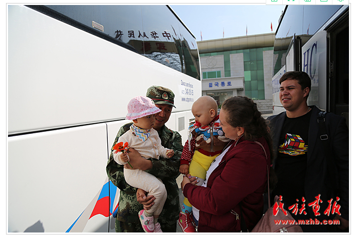 第一次來琿春旅游的俄羅斯游客亞娜帶著她1歲的寶寶剛入境,恰巧遇到帶孩子出來的中國邊防戰(zhàn)士,他們便打起了招呼