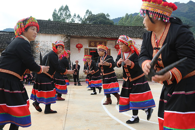 鐘山瑤族的門唻歌、蝴蝶歌、羊角長(zhǎng)鼓舞,正如三顆璀璨的明珠閃耀在大瑤山中?!伴T唻瑤歌唱新事,羊角長(zhǎng)鼓舞長(zhǎng)風(fēng);歌盡黨的好政策,我把幸福藏心中。”現(xiàn)在,瑤族同胞憑借黨的惠民政策,用勤勞的雙手建設(shè)自己美好的家園。閑暇之余打起油茶、唱響門唻歌蝴蝶歌、跳起羊角長(zhǎng)鼓舞,用最美的歌聲、最美的舞蹈表達(dá)對(duì)祖國(guó)、對(duì)黨及對(duì)家鄉(xiāng)的無比熱愛之情。