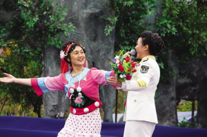 72歲高齡的布依族舞蹈家羅星芳(國家一級演員)和望謨布依女兒、中國海政歌舞團曾小燕(國家二級演員)為大家同臺演繹布依經(jīng)典民歌“好花紅