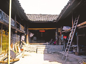 梁河縣九保鄉(xiāng)的阿昌族民居也為三合院,正房的堂屋大都是敞開式,裝飾簡單,左右?guī)烤o湊,院落很小。兩側(cè)廂房樓下,一邊是廚房,一邊是豬圈、牛欄;樓上,一邊是未婚子女的臥室,一邊存放糧食、雜物。