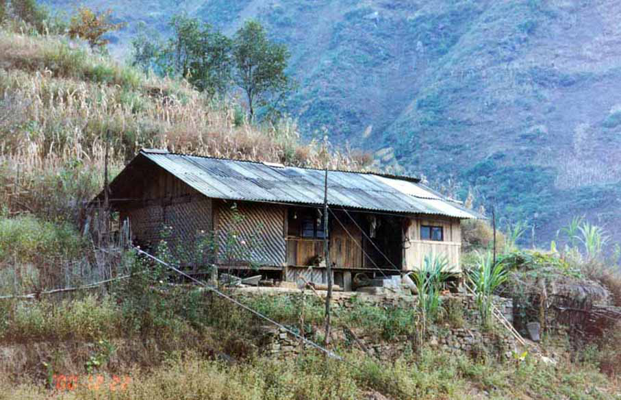 房屋式樣明顯不同于井干式。通常是三間連成一體的組合式房屋。富裕的人家可蓋很多,鰥寡孤獨的老人一般蓋一間,有妻兒的蓋標準的三間。堂屋在中間,外房為結婚后的兒女住,內(nèi)房為倉房。