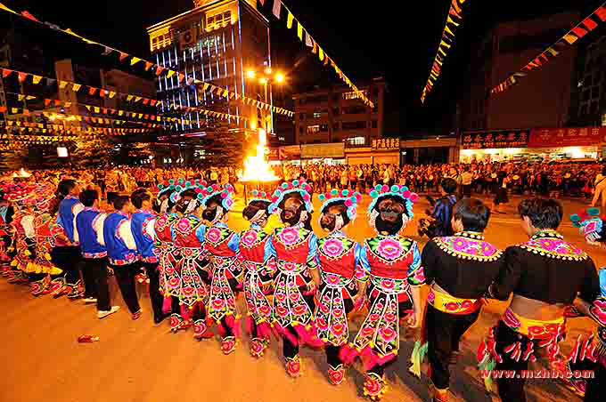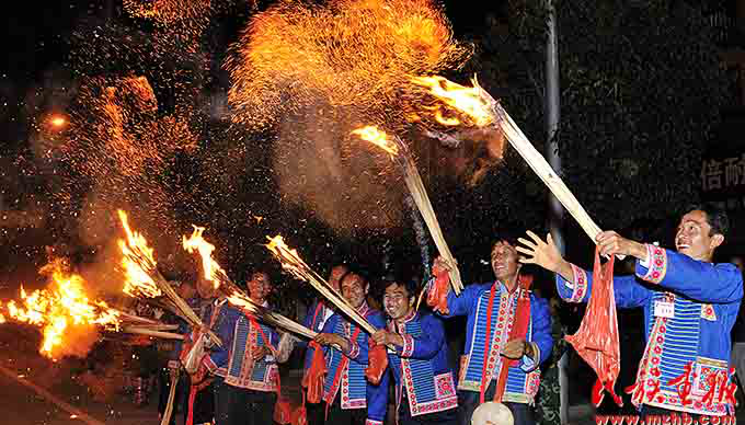 火把節(jié)是彝族傳統(tǒng)節(jié)日中最普遍、最隆重、最富有民族特色的節(jié)日,一般在農(nóng)歷六月二十四至二十六舉行,楚雄彝族火把節(jié)于2006年5月經(jīng)國務(wù)院批準(zhǔn)為第一批國家級(jí)非物質(zhì)文化遺產(chǎn)保護(hù)項(xiàng)目。節(jié)日內(nèi)容集民俗活動(dòng)、經(jīng)貿(mào)活動(dòng)、文體活動(dòng)和社交活動(dòng)于一體,像磁石一樣吸引著各族群眾,許多人就是通過參加火把節(jié)認(rèn)識(shí)了彝族,知道了楚雄彝族自治州的。節(jié)日期間,各族人民載歌載舞,?;鸢选⒎叛婊?,火把節(jié)成了弘揚(yáng)彝族文化、促進(jìn)對(duì)外交流、開展經(jīng)貿(mào)活動(dòng)和各族人民大團(tuán)結(jié)的盛會(huì)。
