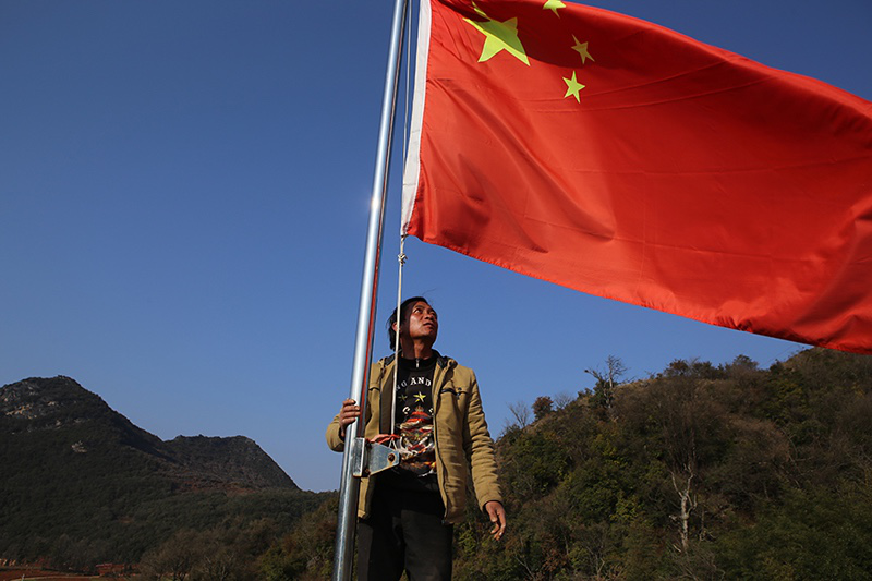 2月初的丘北,連日陰雨,是一年中最冷的時節(jié)。我先于拍攝團隊幾天到了村里,想獨自在這里轉轉,熟悉一下村民,篩選一下拍攝的人物。正當我在一個泥濘的岔路口徘徊,尋思著是否要問路去村主任家的時候,旁邊屋子里走出一個人,面容親善:“天好冷啊,進來烤烤火吧!”他打招呼的方式如同熟人,一笑時露出兩排又白又整齊的牙齒。于是,他家擁擠的火塘邊又多了一個人。大家圍著火爐有一搭沒一搭地聊天,語調溫和小聲,沒話的時候大家也不覺得別扭,只聽見玉米骨在火塘里噼啪作響。這是一個五代同堂的大家庭,招呼我的主人楊樹紅和妻子以及祖母、父母一起生活,兒子和女兒在廣東打工,已經回村準備過節(jié),兒子未婚,女兒則有了兩歲的孩子。楊樹紅的祖母出生于1922年,是這個村子里最老的老人,耳朵有些背。我大聲問她是否還記得年輕時候踩花山,她拍著我的手背說:“17歲我就去踩花山嘎!好玩嘎!”兒媳笑著解釋說:“估計她說的是17歲踩花山的時候碰到爺爺,被他拖媳婦拖走的事呢?!弊婺改昙o太大,看著她手上和臉上深深的褶皺,不知藏了多少往事。