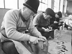最后一道工藝,在過(guò)去算是秘密,現(xiàn)在已經(jīng)眾所周知,就是用油煮、蠟?zāi)サ姆椒ㄊ剐〉豆饬?,不生銹。
