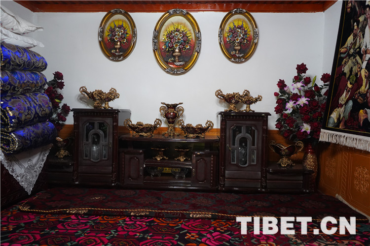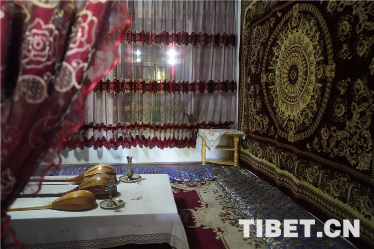 圖為吐達洪巴依大院房間內(nèi)的擺設。