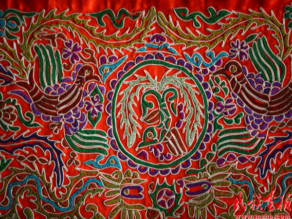 黎錦、壯錦、艾德萊斯綢、氆氌、苗繡、羌繡、馬尾繡、蠟染、扎染……當(dāng)我們面對這些精美的作品時(shí),我們很難想象到這些東西是由少數(shù)民族婦女的雙手,使用最簡單的紡車、織機(jī)等工具創(chuàng)造出來的,她們靠口傳心授把技法熟記于心,大自然是她們模仿的對象,她們制作出的服飾不僅色彩豐富,而且還將民族發(fā)展的歷程紀(jì)錄在了服飾上。很多少數(shù)民族沒有自己的文字,對自己民族歷史的記載除了口口相傳以外,他們把一些提煉升華后的符號(hào)或織或繡或染到服飾之中。苗族的服飾文化在這一點(diǎn)上極其突出。苗族沒有文字,苗族的歷史文化是靠口頭文學(xué)和服飾圖畫藝術(shù)來表達(dá)的。苗族老人對苗族少年講述民族歷史時(shí),常指著服飾上的各色圖案一一道來。苗族服飾再現(xiàn)歷史的功能,成為苗族傳世的“無字史書”。