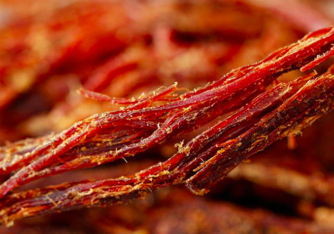 火燒干巴的吃法不復(fù)雜,不加任何輔料,不加任何味道,撕開肉絲即可食用。如果覺得干,可以涼拌一盤黃瓜輔之,風(fēng)味更甚。剛燒出來的干巴,香且脆,味勻,擱置太久,會(huì)回軟,失去其原有的香脆可口的口感。