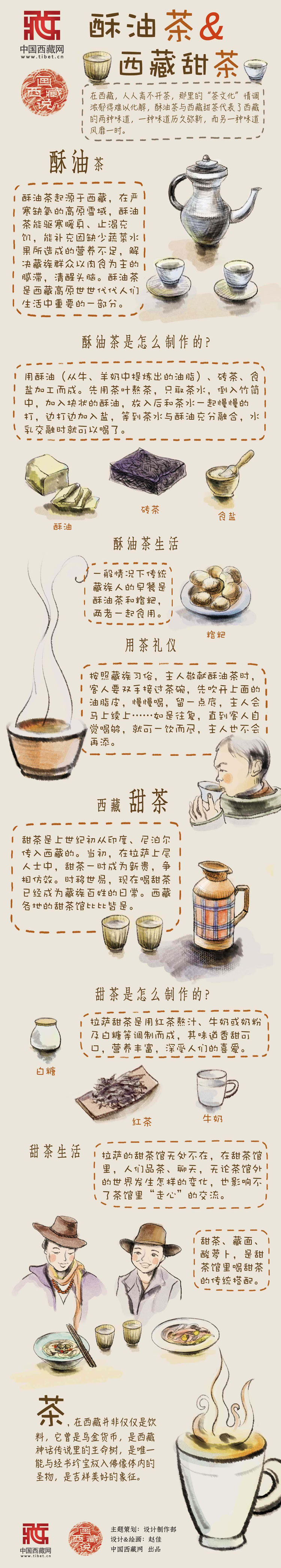 西藏人的飲料以茶為主,喝茶是藏族、門巴族、珞巴族日常生活中不可缺少的一部分。生活在西藏高原上的人一般早上都要喝茶,最喜歡喝的是酥油茶,還有奶茶和清茶。打酥油茶之前先將磚茶或[刪]熬成汁,濾出茶葉,將茶汁倒入專用陶罐內(nèi)盛放,隨用隨取。打酥油茶時,先從存放茶汁的陶罐內(nèi)取出適量的茶汁,加上適量的開水和食鹽,倒人酥油茶桶內(nèi),放上酥油,上下抽動酥油茶桶內(nèi)的攪桿幾十下,使酥油與茶水充分交融,倒出來便是香噴噴的酥油茶了。女主人把打好的酥油茶盛在陶質(zhì)酥油茶壺內(nèi),將壺坐在陶質(zhì)羊糞火爐上保溫,現(xiàn)飲現(xiàn)倒,始終是熱的。因為打好的酥油茶要保持恒溫,既不能燒開,也不能讓其涼了。若再燒開,茶就變味不好喝;若放涼了,則茶里的酥油趨于凝固不好喝。羊糞火爐里的羊糞[刪]火是暗火,能使壺里的茶既不開也不涼。非常適合藏家人的這一生活需求。西藏一年到頭氣候干燥,生活在這里的人一天到晚離不開茶,一般早茶必須是酥油茶,中午以后則喝不加酥油或牛奶的清茶。