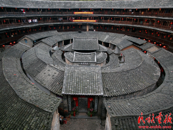 位于永定縣高頭鄉(xiāng)的客家土樓承啟樓建成于清代康熙年間,因為動工時間都艷陽高照、天公作美,所以又被稱為“天助樓”。同時,承啟樓是福建現(xiàn)存的最高大、古老的圓樓,也是文化內涵最豐富的一座土樓,所以又被稱為“土樓王”。