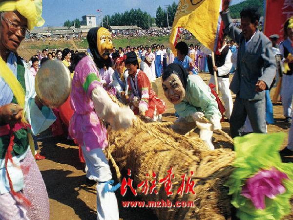 拔河是每年的農(nóng)歷正月十五舉行,最早多在民族運(yùn)動(dòng)會(huì)上進(jìn)行,以自然村為一個(gè)參賽單位,同臨近的村進(jìn)行比賽。首先要準(zhǔn)備拔河繩,繩有雄繩和雌繩之分,用稻草和藤條搓成。拔河繩有20?30厘米粗,長(zhǎng)30?40米,由雄繩和雌繩兩股繩組成,然后進(jìn)行拔河比賽,雌繩獲勝說(shuō)明當(dāng)年農(nóng)業(yè)大豐收,因此雄繩有時(shí)會(huì)故意輸給雌繩?!?/p>