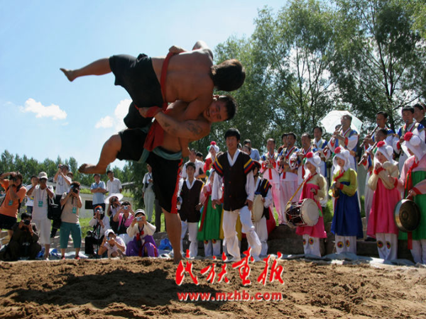 摔跤是朝鮮族男性最喜歡的民俗游戲和體育項(xiàng)目之一