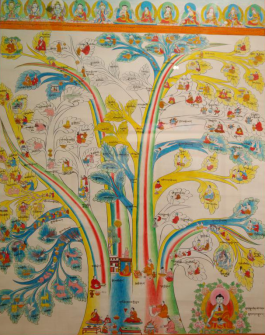 “唐卡”也叫“唐嘎”、“曼湯”,系藏語譯音。唐卡的起源,至今沒有史料給予精確的記載。據(jù)藏史記,兩千多年前在西藏修建的第一座宮殿——雍布拉宮的墻壁上就繪有壁畫,由此說明唐卡的雛形是源于壁畫。有的學(xué)者認(rèn)為,最早的唐卡是繪制在獸皮上,它起源于牧業(yè)文明的雅礱文化時期。唐卡可分為兩大類,一類是用絲絹制成的唐卡叫“國唐”,另一類是用顏料繪制的唐卡叫“止唐”。常說的80幅醫(yī)學(xué)唐卡即“止唐”中的一種,全稱為彩色繪畫唐卡。彩繪唐卡是依據(jù)《四部醫(yī)典》這部巨著,在公元1730年五世達(dá)賴授意第司·桑結(jié)嘉措組織藏區(qū)著名醫(yī)學(xué)家、繪畫大師通過對尸體解剖、藥材實物考察,以科學(xué)態(tài)度整理繪制的,又被稱為《四部醫(yī)典系列掛圖》,掛圖的繪制使《四部醫(yī)典》這部博大精深的醫(yī)著史書簡明易懂。西藏自治區(qū)藏藥廠的陳列室藏這珍貴的歷史資料——醫(yī)學(xué)唐卡,幾百年過去了,唐卡色彩依然明亮艷麗、工筆細(xì)膩、活靈活現(xiàn),栩栩如生。繪制唐卡的原料全部是用金、銀、珍珠、瑪瑙、珊瑚、松石、孔雀石、朱砂等珍貴的礦物寶石和藏紅花、大黃等天然植物做顏料制作而成,使唐卡有著非常高的純度和穩(wěn)定性。第司·桑結(jié)嘉措完成的唐卡有79幅,加附由第司·桑結(jié)嘉措親筆題詩加蓋印章的一幅歷代名醫(yī)圖,組成“80幅唐卡”。80幅唐卡,從藥王及藥王城(藏醫(yī)學(xué)基礎(chǔ)理論的建立),人體生理病理、診斷、治療的樹喻學(xué)說,病因、癥狀和分類,藏藥的藥物理論和分類,防病、診斷和治療、養(yǎng)生方法, 生動形象地反映了藏醫(yī)藥學(xué)發(fā)展的進(jìn)程和偉大實踐。藏醫(yī)彩繪唐卡除了有極高的教學(xué)價值外,還有很高的民族學(xué)、歷史學(xué)、佛學(xué)及繪畫學(xué)價值,是研究藏文化的珍貴資料,其卷幅之多、內(nèi)容之廣博、構(gòu)思之巧妙、畫工之精湛堪稱世界醫(yī)學(xué)掛圖之最,是藏醫(yī)學(xué)對世界醫(yī)學(xué)的珍貴貢獻(xiàn)。詳細(xì)名目如下: