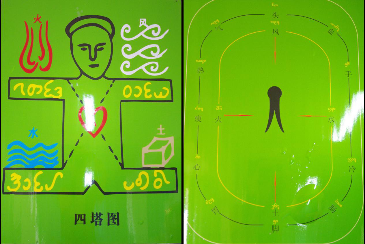 塔都檔細(xì)與夯塔檔哈(四塔、五蘊(yùn))理論。傣醫(yī)藥學(xué)把自然界萬(wàn)物歸屬于“風(fēng)、火、水、土”四大類(lèi)來(lái)認(rèn)識(shí),認(rèn)為“風(fēng)、火、水、土”是構(gòu)成人體的四種基本物質(zhì)元素,亦稱(chēng)“四要素”。傣醫(yī)學(xué)借用“四塔”一詞來(lái)形象地解釋人體的生理功能和生理現(xiàn)象,病理變化,指導(dǎo)臨床辨病,立法選方用藥。傣醫(yī)四塔學(xué)說(shuō)主要用以解釋人體的生理現(xiàn)象和病理變化,對(duì)于人的精神現(xiàn)象,“四塔”還是不能說(shuō)明。因此,傣族先民們?cè)诟爬ㄡt(yī)療實(shí)踐的基礎(chǔ)上,又從佛教中引入了“五蘊(yùn)”的合理因素,提出了自己的“五蘊(yùn)”概念,以此來(lái)概括和說(shuō)明人的精神現(xiàn)象及其生理(病理)的關(guān)系?!拔逄N(yùn)”舊譯作“五陰”,“陰”指“覆蔽”的意思?!拔逄N(yùn)”傣語(yǔ)稱(chēng)“夯塔檔哈”?!疤N(yùn)”有蘊(yùn)積,蘊(yùn)藏之意,是蘊(yùn)藏于體內(nèi)的五種內(nèi)在因素。其中“色蘊(yùn)”(魯巴夯) 是指人體形狀、容顏、人的精神狀況,是人體外在的表象;“識(shí)蘊(yùn)”(維雅納夯) 是指人對(duì)外界的識(shí)別能力;“想蘊(yùn)”(先雅納夯) 是指人的思維能力,思想和欲望;“受蘊(yùn)”(維達(dá)納夯)即人體對(duì)外界各種刺激的反應(yīng),也可以理解為人對(duì)外界刺激的感受性耐受力等;行蘊(yùn)(山哈納夯)則是指人自受精卵開(kāi)始生長(zhǎng)發(fā)育至衰老死亡,全部階段的變化過(guò)程。