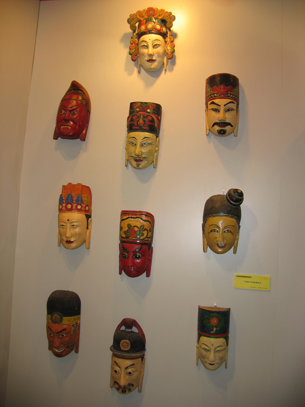 毛南族木雕工藝中最具民族文化特色的要數(shù)木面具雕刻以及師公法事所用的簡符、寶杖、笏窖等法器的雕刻。木刻面具主要為“鬼師”跳神、驅(qū)邪、逐疫之用。