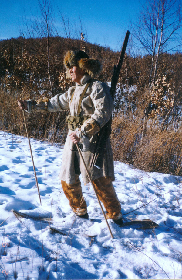 肯古楞,即滑雪板,是達(dá)斡爾人早期交通工具?;┌逵盟赡尽迥景逯谱?,約長1.2米、寬15厘米,前端翹起。在底面貼帶毛的野公豬脊皮,鬃毛向后,或貼夏季的狍子脊皮,以減少摩擦,提高滑速?;r(shí)雙手撐桿,在冬季雪厚時(shí)在山野中代步或追蹤野獸。