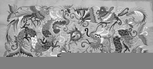 此外,還有一些苗繡圖案反映了歷史事件,比如貴州省博物館在上世紀(jì)80年代從一名苗族婦女手中征得一件上世紀(jì)50年代做成的苗族女服。令人驚嘆的是,經(jīng)考證,該衣的袖片圖案取材于一段真實(shí)的歷史——1855年張秀眉領(lǐng)導(dǎo)苗族農(nóng)民在臺(tái)拱起義的歷史事件。