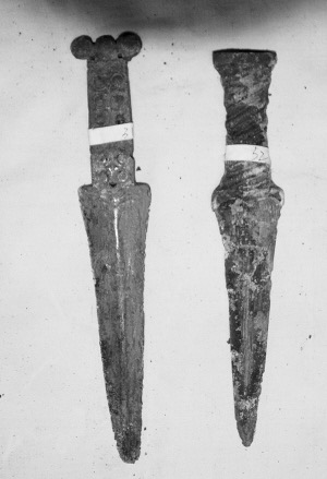 2006年,涼山州文化局請文物專家鑒定了公安機(jī)關(guān)收繳的鹽源文物,鑒定現(xiàn)場有3把雙環(huán)首青銅短劍。其中一把青銅短劍長27厘米,一把長27.5厘米,還有一把26厘米,均為戰(zhàn)國至漢代時期文物。