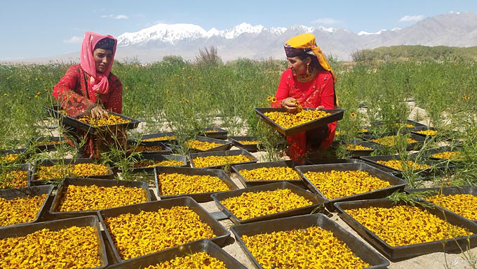 黨中央和全國各族人民的關心為塔吉克族的教育事業(yè)在帕米爾高原上播下希望的種子,也在塔吉克族群眾的致富路上播下了發(fā)展種植產業(yè)的種子。2016年,塔什庫爾干塔吉克自治縣通過招商引資,引進浙江威泰生物科技有限責任公司與塔什庫爾干塔吉克自治縣塔合曼鄉(xiāng)白尕吾勒村合作,村中十幾戶村民的幾百畝地流轉給了威泰生物科技有限責任公司,村民就變成了公司的員工。在公司技術員的指導下,塔吉克村民們學會了黑麥、藜麥、瑪卡和雪菊的種植技術和管理方式。在家門口每天都能得到150元務工費的塔吉克族村民,一年下來也可以有幾萬元的收入。