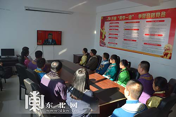 10月18日,同江市八岔赫哲族鄉(xiāng)干部群眾激動(dòng)地收看黨的十九大開幕會(huì)