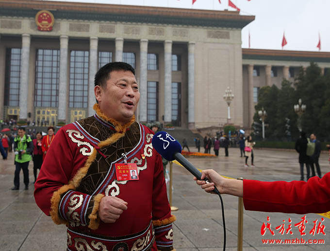 十九大代表尤明國(赫哲族)在會(huì)議期間接受記者采訪(滕俊 攝影)