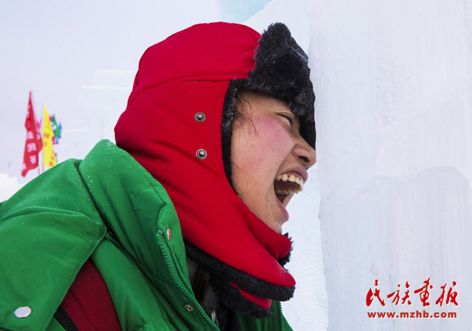 南方的游客第一次看到那么美的雪、那么厚的冰,激動(dòng)地想咬一口(武倩 攝影)