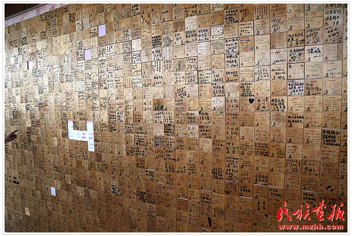 防川龍虎樓上游客的留言牌貼滿(mǎn)了一面墻