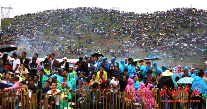 來觀看火把節(jié)的觀眾密密麻麻坐滿火把場周圍的山坡,場面十分壯觀