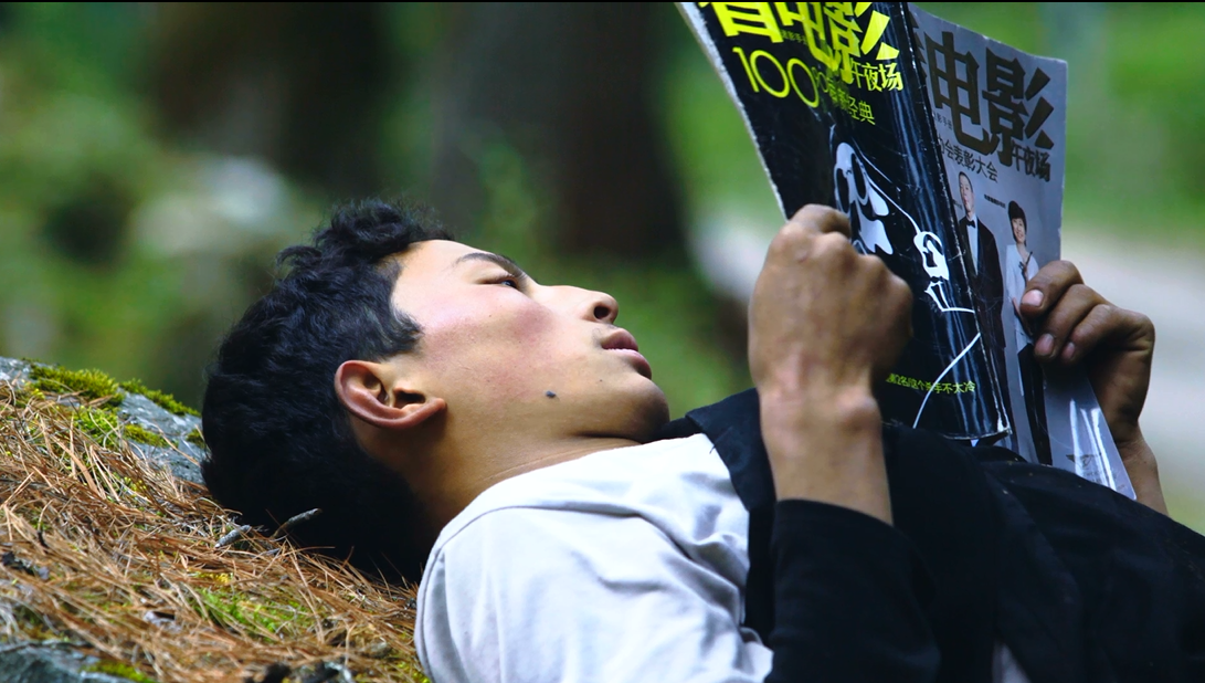 圖片名稱:放映員正在看雜志《看電影》