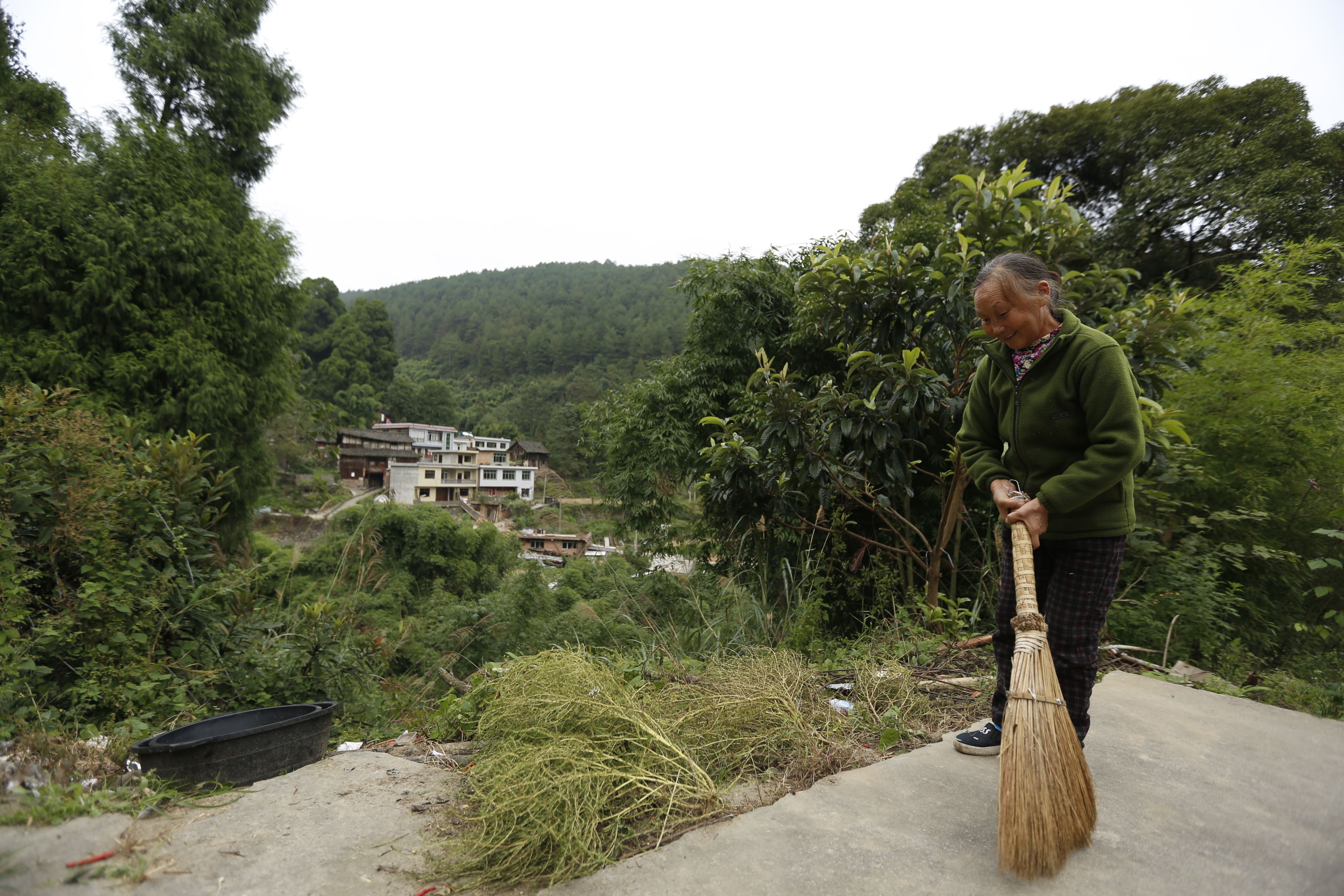 圖片說明:貴州貴陽苗族日常生活-打掃院落
