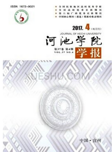 《河池學(xué)院學(xué)報(bào)》為綜合性學(xué)術(shù)刊物,是河池學(xué)院辦學(xué)力量和學(xué)術(shù)科研的窗口,對(duì)外學(xué)術(shù)交流的主要載體。其前身是1981年創(chuàng)刊的《河池師專(zhuān)》,1982年改為《河池師專(zhuān)學(xué)報(bào)》(季刊),2004年6月更名為《河池學(xué)院學(xué)報(bào)》(雙月刊)?!逗映貙W(xué)院學(xué)報(bào)》是中國(guó)知網(wǎng)、中國(guó)學(xué)術(shù)期刊(光盤(pán)版)全文收錄、中國(guó)核心期刊(遴選)數(shù)據(jù)庫(kù)、萬(wàn)方數(shù)據(jù)等數(shù)據(jù)庫(kù)收錄期刊。2008年被評(píng)為“第六屆廣西優(yōu)秀社會(huì)科學(xué)期刊”、獲得“廣西高校優(yōu)秀學(xué)報(bào)一等獎(jiǎng)”;2010年學(xué)報(bào)被評(píng)為“全國(guó)高校優(yōu)秀社科期刊”;2011年學(xué)報(bào)獲“廣西期刊獎(jiǎng)提名獎(jiǎng)”、“第三屆廣西裝幀設(shè)計(jì)優(yōu)秀期刊”;2012年被評(píng)為“第二屆全國(guó)民族地區(qū)優(yōu)秀學(xué)報(bào)”、“廣西高校優(yōu)秀學(xué)報(bào)一等獎(jiǎng)”,“粵西文人與文獻(xiàn)研究”被評(píng)為“第二屆全國(guó)民族地區(qū)學(xué)報(bào)‘名欄’”;2013年學(xué)報(bào)編輯部被評(píng)為“廣西高校學(xué)報(bào)優(yōu)秀團(tuán)隊(duì)”。此外,學(xué)報(bào)編輯部多名編輯多次被評(píng)為“優(yōu)秀編輯”。