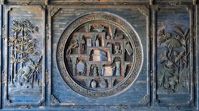 磚雕指在青磚上雕出山水、花卉、人物等圖案,是古建筑雕刻中很重要的一種藝術形式。
