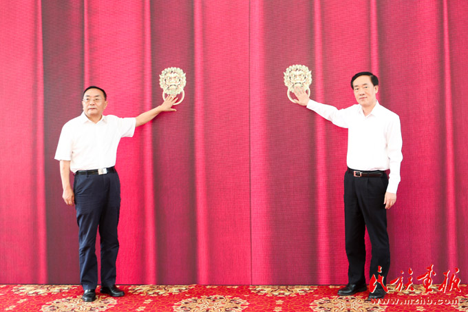國家民委副主任李昌平,河南省人民政府副省長、運動會籌委會副主任戴柏華共同啟動運動會官方網站上線