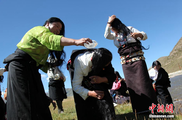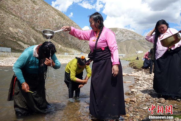 每年的夏末秋初,藏族同胞迎來一年一度的“沐浴節(jié)”?!般逶」?jié)”,藏語稱為“嘎瑪日吉”,為期7天。這項古老習(xí)俗已經(jīng)延續(xù)了800多年。西藏流傳民謠,“待到棄山星升起,清凈溫暖好沐浴。”也就是說,在“棄山星(金星)””照亮雪域高原的七天里,藏族民眾在星光照耀過的水流中沐浴,可祛除身體病痛、心理雜念,全年健康。