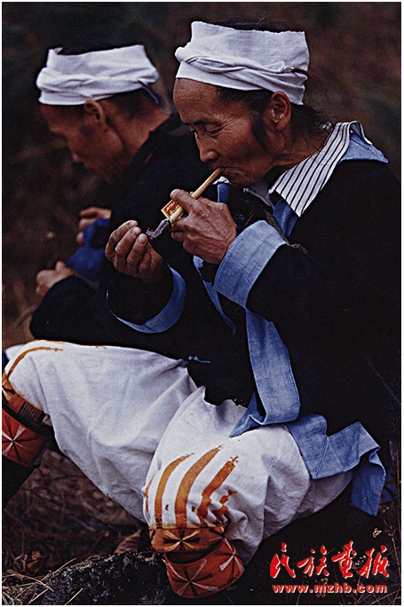 有人說,白褲瑤婦女的一生都在為做衣服而忙碌,這話一點不假。盡管現(xiàn)在我國服裝的樣式豐富多彩,面料五花八門,但是白褲瑤仍舊保持自己本民族的著裝習慣。婦女們每年自己種棉花、自己紡線、自己織布、自己印染、自己繡花、自己縫制衣服。