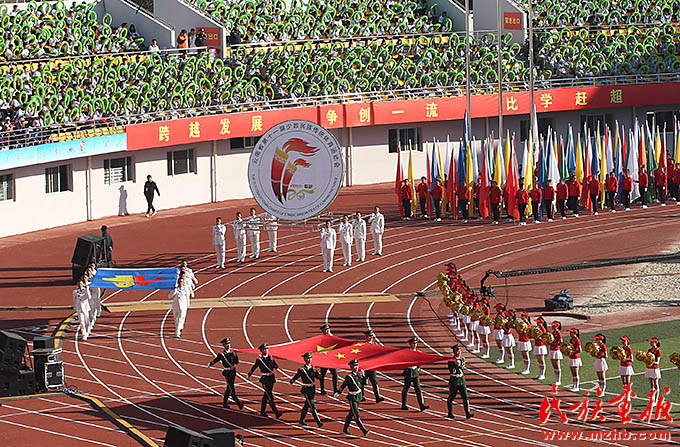 云南省少數(shù)民族運(yùn)動(dòng)會(huì)國(guó)旗、會(huì)旗方陣入場(chǎng)