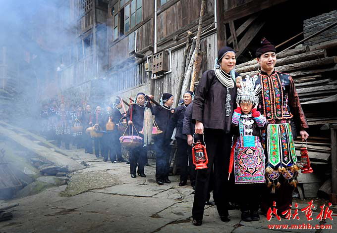 2018年新春,融水苗族自治縣蘆笙協(xié)會(huì)與安太鄉(xiāng)林洞村培科屯舉行“打同年”活動(dòng),參加活動(dòng)的群眾進(jìn)入村寨后,一同匯集到蘆笙坪,吹蘆笙、跳踩堂舞、吃百家宴等民俗活動(dòng)輪番上演,一派喜氣洋洋的節(jié)日景象。晚上,村民們蒸好糯米飯,殺雞宰鴨,拿出酸魚、酸肉和自家釀制的糯米酒來款待客人。晚飯后,老人們圍著火塘唱起古老的歌謠,青年男女則互相串門聊天、對(duì)歌。