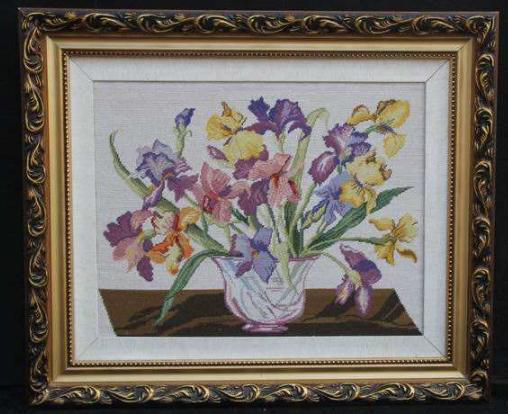 一般畫面較大,多數(shù)復(fù)制名畫、人物和風(fēng)景照片。用線顏色往往達數(shù)百種,特別強調(diào)色階、色相的過渡,并注重人物神態(tài)的刻畫。作品常作為大型建筑的室內(nèi)裝飾。