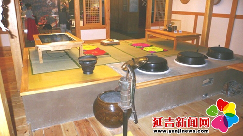 無論什么類型的朝鮮族傳統(tǒng)民居,只要走進房屋,第一個感覺就是有很大的一個炕??皇浅r族人在室內(nèi)的主要活動空間,你看有的炕上親友們在圍桌對飲,有的炕上婦女們在做活計,還有的炕上孩子們在玩耍。炕大,散熱面積就大,屋里到了冬天就會顯得特別暖和。在延邊地區(qū)朝鮮族房屋內(nèi)的灶坑更是別具一格,它下陷在地下,底部低于地面,上部還有蓋板,而蓋板和鍋臺、炕面形成了一個平面。據(jù)說,這種灶坑是既好燒、又衛(wèi)生。