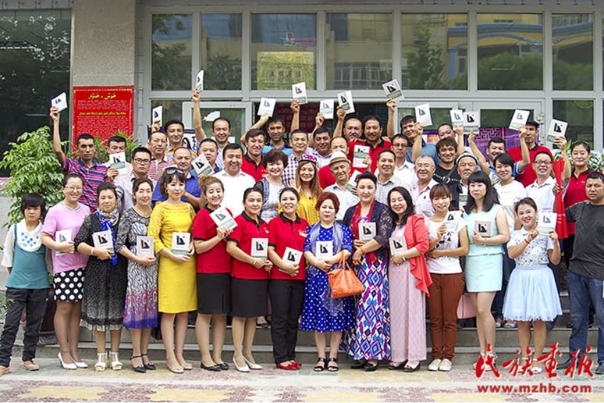 帕蒂古麗(中)出席中國少數(shù)民族作家學(xué)會第三屆二次代表大會
