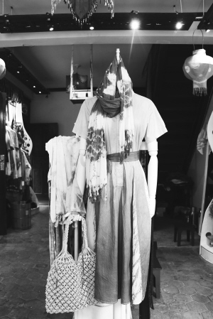 青白扎染坊如果單單在既“清白”又“固步自封”的原則下生產,很難適應市場需求。所幸的是,他們在傳承保護和創(chuàng)新發(fā)展中間找到了一個平衡點,即在不影響傳統(tǒng)文化和傳統(tǒng)制作流程的前提下,在適應市場需求、在生產樣式上進行了創(chuàng)新:將原本只是生產布料的成品稍作加工,制成短袖、裙子、帽子、挎包等現(xiàn)代服飾樣式,推出了以扎染為布料的抱枕、茶杯墊等家居用品,更加契合了游客的實用需求。在銷售渠道上,青白扎染坊自制網(wǎng)站和網(wǎng)店,努力在互聯(lián)網(wǎng)上尋求商機以擴大市場,形成了有效的銷售網(wǎng)絡。